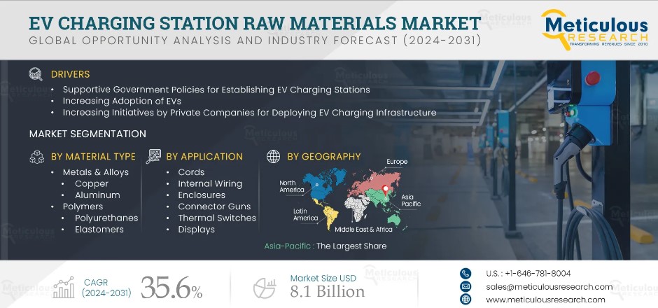 “Based on material type, the global EV charging station raw materials market is segmented into metals & alloys and polymers,” said a report from Meticulous Research. “In 2024, the metals & alloys segment is expected to account for the larger share of over 60% of the global EV charging station raw materials market.”