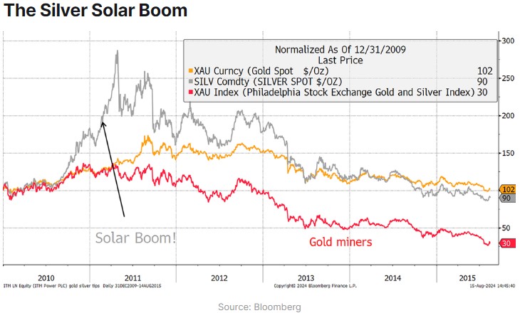 “This reminds me of the silver rally of 2010, which saw the price surge to $50 on the back of demand for solar panels,” he said. “The slump that followed was weighed down not only by a weak gold market but also by substitution, something that has killed many commodity rallies.”