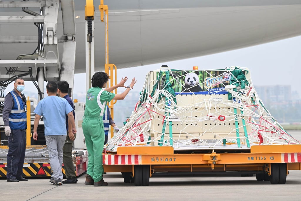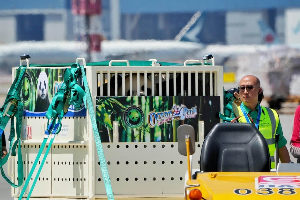 The pandas are being accompanied on the two-hour flight by Sichuan experts Dong Li and Cheng Yanxi, along with caretakers from Ocean Park.