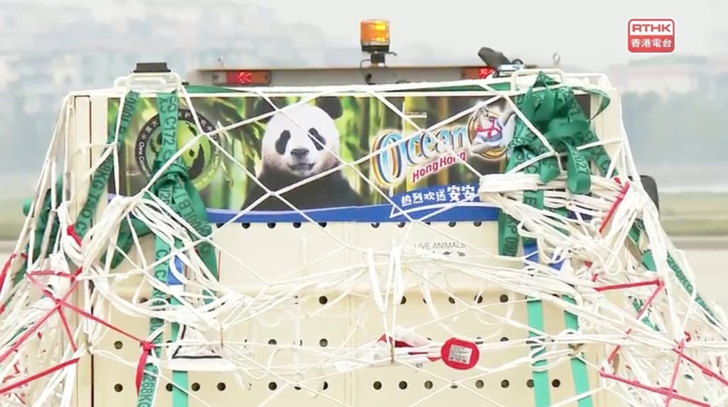 Hong Kong’s 2 new giant pandas An An and Ke Ke touch down in city