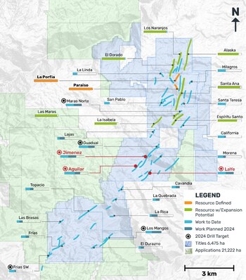 The 2024 Exploration Program at Santa Ana is focused on demonstrating a clear pathway to expand the known resource area along the extensive 17-kilometre strike of drill-permitted targets (Figure 2) within the 30-kilometre mineralized trend. Through large step-outs and testing new drill targets such as La Ye and Morena, the program aims to define high-priority drill-ready targets and significantly increase the project's resource potential.