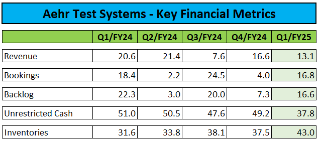 To: Johnny Canuck who wrote (60367 ) 10/11/2024 1:44:05 PM From: Johnny Canuck Read Replies (1) | Respond to of 67962 This page was last archived 13 hours ago If this snapshot looks obsolete you can again Entering text into the input field will update the search result below Create free account Log in Home Earnings Analysis Tech Aehr Test Systems: Enthusiastic Management But Weak Near-Term Prospects, HoldOct. 10, 2024 11:18 PM ET| Aehr Test Systems, Inc. (AEHR) Stock | 1 Comment Henrik Alex Investing Group Leader FollowFollowingPlay (7min) SummaryShares of wafer level test and burn-in system supplier Aehr Test Systems rallied after the close of Thursday's regular session as investors cheered better-than-expected Q1/FY2025 results. Results and backlog benefited from the recent acquisition of Incal Technologies. As usual, management remained enthusiastic about the company's diversification into new markets, including AI. However, expansion into new markets won't offset persistent weakness in the core silicon carbide system business anytime soon. While market participants are likely to celebrate perceived AI market prospects in the near-term, persistent weakness in the company's core business is keeping me sidelined for now. PhonlamaiPhotoNote: I have covered Aehr Test Systems (NASDAQ: AEHR ) previously, so investors should view this as an update to my earlier articles on the company. Shares of wafer level test and burn-in system supplier Aehr Test Systems, or "Aehr" rallied by more than 10% after the close of Thursday's regular session as investors cheered better-than-expected Q1/FY2025 results :Company Press Releases Both revenue and profitability came in ahead of muted consensus expectations as the company benefited from the contribution of Incal Technologies or "Incal" following the close of the acquisition in late July. While Aehr generated positive cash flow from operations during the quarter, the Incal acquisition resulted in unrestricted cash decreasing by $11.4 million on a sequential basis. Management also provided very encouraging market commentary:We finished the first quarter with revenue and non-GAAP net income ahead of consensus estimates and are off to a good start to our fiscal year. Silicon carbide wafer level burn-in test systems and full wafer contactors are poised to be key contributors to revenue again this year. We are also forecasting material bookings and revenue contributions from several other markets this fiscal year, as we are successfully executing on our strategy to expand our test and burn-in products into other large and fast-growing markets such as artificial intelligence processors, gallium nitride power semiconductors, hard disk drive components and flash memory devices. We have been seeing a stabilization and increasingly positive discussions within the silicon carbide power semiconductor market over the past quarter. (...)We are highly optimistic about our silicon carbide business and expect it to gain momentum over the next few quarters. In addition, management was enthusiastic about the company's prospects in the gallium nitride semiconductor market: We are now in negotiations with our first gallium nitride ("GaN") semiconductor customer for volume production wafer level test and burn-in of their devices. (...)We believe GaN is a significant up and coming technology for power semiconductors. With a forecasted CAGR of more than 40% to over $2 billion in GaN devices sold annually by 2029, it has the potential to be a significant market opportunity for Aehr’s wafer level solutions. Perhaps even more important in the current stock market environment, Aehr claimed substantial progress in the evaluation of its wafer level burn-in solution for the production of next-generation AI processors:Last quarter, we announced that an Artificial Intelligence ("AI") accelerator company committed to evaluating our FOXTM solution for wafer level burn-in of their high-power processors. (...) The evaluation is progressing very well, and once we demonstrate successful wafer level test results and throughput, we anticipate they will adopt our high-power FOX-XP systems for production of their next-generation AI processors, beginning this fiscal year. Management also stated expectations for multiple near-term FOX-CP production system and WaferPak Contactor orders being placed by "a key customer in the hard disk drive space " with shipments expected in the second half of the current fiscal year. Last month, the company announced an order for six Sonoma ultra-high-power systems for volume production test and burn-in of AI processors by a "large-scale data center hyperscaler ". Please note that the Sonoma system has been contributed by recent acquisition Incal Technology.Incal Technology Despite the better-than-expected quarter and very positive market commentary, management only reiterated the company's previous FY2025 guidance for revenues of "at least $70 million and net profit before taxes of at least 10% of revenues ". In addition, Aehr Test Systems abstained from providing its effective backlog number, which includes all orders received since quarter-end. After being asked by an analyst on the conference call , management stated that the above-discussed Sonoma multi-system sale was the only meaningful order received so far in Q2/FY2025 and providing the effective backlog number would have allowed for extrapolating Sonoma system pricing. Given this issue, Aehr Test Systems would be well-served to secure additional orders in the current quarter, as otherwise the company would also have to go dark on their quarter-end backlog number. Please note also that the acquired Incal products tend to have much longer lead times than Aehr's core offerings. For my part, I wasn't overly impressed by management's performance, as many topics had been already discussed in a similar manner on the Q4/FY2024 conference call . While there's certainly nothing wrong with the company's diversifica