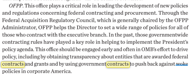 And here's a tidbit from the Project 25 Mandate for Leadership Handbook about government contracts and "woke" policies. What if the use of archtectural smart glass is too "woke" for them?