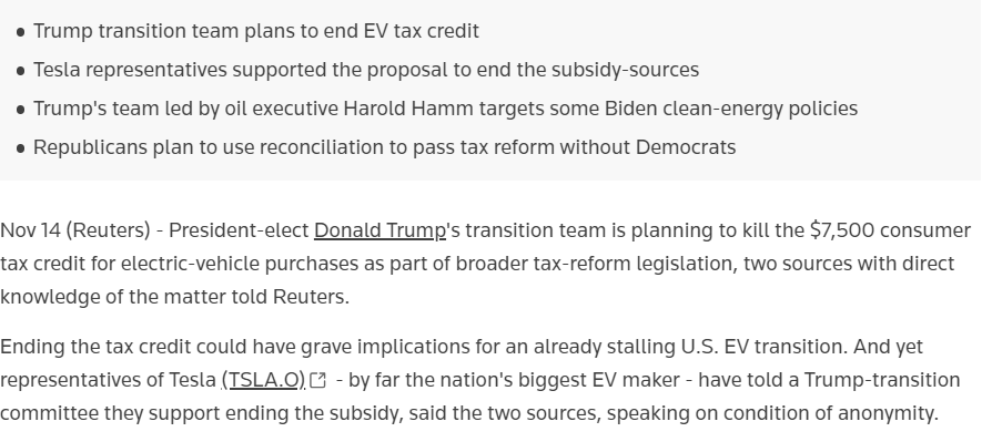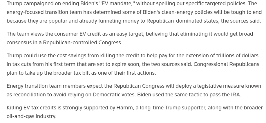 Exclusive: Trump's transition team aims to kill Biden EV tax credit