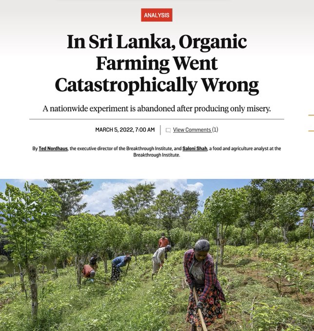 Sri Lanka recently tried RFK Jr.'s food plan. The results were catastrophic. It caused agricultural productivity to plummet, led to widespread food shortages, skyrocketing prices, lost export revenue, and destroyed the economy. Farmers faced massive losses and the government was forced to reverse the ban and import emergency food supplies at great cost.