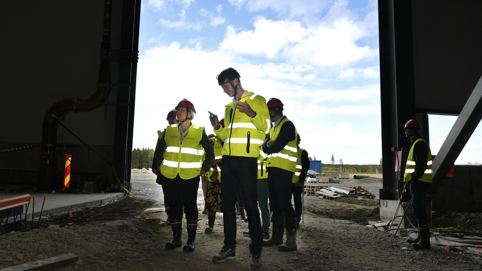 Peter Carlsson shows Governor Helene Hellmark Knutsson around the factory construction. Foto: Jeanette Lövgren