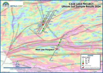 Haydn Daxter, CEO of Power Metals commented: "I am very excited with the results from the soil sampling program that has defined a new prospective area on the property as we continue to target cesium and critical minerals at our Case Lake Project. The ongoing development of our geological model continues to define additional drill targets for cesium and critical minerals outside of West Joe. In addition, our Phase II drone magnetic survey data will further strengthen our geological understanding across the property and will set the stage for our 2025 exploration activities."