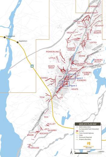 VANCOUVER, BC, Dec. 2, 2024 /CNW/ - New Found Gold Corp. ("New Found" or the "Company") (TSXV: NFG) (NYSE-A: NFGC) is pleased to announce the results of the second phase of channel samples from the Keats Trench and an update on the Iceberg Trench at the Queensway Project ("Queensway"), located on the Trans-Canada Highway 15km west of Gander, Newfoundland.