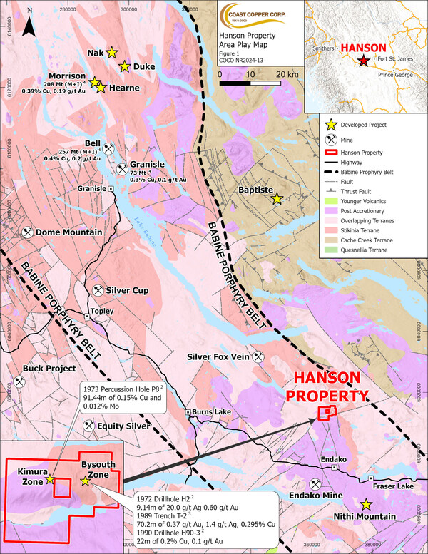 COCO NR24-13 Figure 1: Hanson Property (CNW Group/Coast Copper Corp.)
