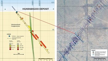 Figure 1: Plan view of Drill Collars between Huarabagoo and Junnagunna, locations of highlight holes shown. (CNW Group/Laramide Resources Ltd.)