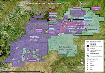 • New Exploration Permit (EPM 28807) granted adjacent to Westmoreland Project adding 327km2 of highly prospective tenure in NW Queensland
