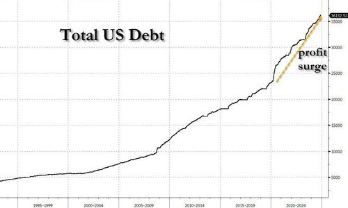 Either this time is different, or the US might just be slip-sliding into a profits crushing recession, and this time - thanks to Trump and Musk's DOGE - there will be no $1 trillion in debt in 100 days to pull the US economy out of the abyss...