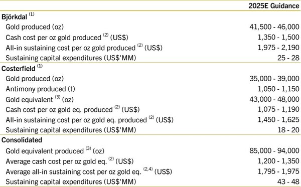 "Looking ahead to 2025, we expect to continue to generate robust cashflow from both gold and antimony production. Due to planned mine sequencing, we expect Costerfield's 2025 production to be 43,000 – 48,000 gold equivalent ounces followed by higher production in 2026. 2025 is a key mine development year at Costerfield with a planned investment of $18 – $20 million in sustaining capital, to enable mining flexibility, long-term growth, and sustained profitability.