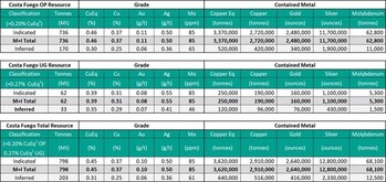 Costa Fuego Combined Mineral Resource (Effective Date 26th February 2024)