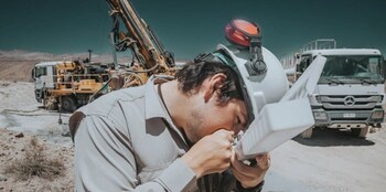 Hot Chili geologist reviewing drill chips from drill hole DKP002 at La Verde (CNW Group/Hot Chili Limited)