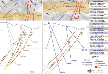 OUTCROP SILVER EXTENDS LA YE VEIN SYSTEM 450 METRES ALONG STRIKE AND 200 METRES AT DEPTH WITH HIGH-GRADE SILVER DRILL INTERCEPTS newswire.ca News provided by Outcrop Silver & Gold Corporation Jan 06, 2025, 07:30 ET VANCOUVER, BC, January 6, 2025 /CNW/ - Outcrop Silver & Gold Corporation (TSXV: OCG) (OTCQX: OCGSF) (DE: MRG) ("Outcrop Silver") is pleased to provide an update on drilling assay results from the La Ye vein at its 100% owned Santa Ana high-grade silver project in Colombia. Recent drilling has confirmed a 450 metre strike extension of La Ye vein, with mineralization extending to 200 metres down-dip. These results reinforce the potential of the La Ye vein to make substantial contribution to growth of the mineral resource at Santa Ana. Located approximately four kilometres south of the existing mineral resource area, La Ye vein demonstrates high grade silver-gold mineralization in both high-grade zones and broader mineralized intervals. These characteristics underscore its scalability and strategic importance in driving the continued resource growth of the Santa Ana project.