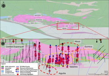 "The discovery of these two new gold zones at our Duparquet Gold Project demonstrates the continued success of our exploration program at the Project," stated Dan Wilton, CEO of First Mining. "With more than two full exploration seasons now under our belt at Duparquet, our team is producing exceptional drill results with a degree of predictability supported by a robust geoscience foundation. On top of the existing mineral resource base of 3.44 Moz of Measured & Indicated resource and 2.64 Moz of Inferred resource, these results demonstrate that Duparquet is well positioned to achieve significant resource growth, demonstrating that Duparquet is one of the strongest gold-endowed assets in Canada, strategically located in the heart of the Abitibi gold belt in Quebec."