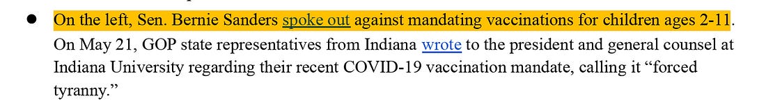 You were saying similar things during that same time. After denouncing the “profit-driven” approach of vaccine-makers earlier that year, you said in May, “ It’s not my job to tell parents or kids to get vaccinated.” That last comment was enough to earn you a mention in the Virality Project’s next weekly briefing, from May 18th, which listed your comments as one of its misinformation “events”: