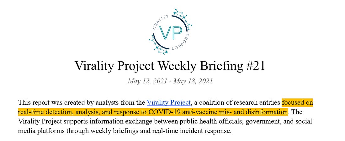 You and Mr. Kennedy were both cited by one of the leading government-partnered “anti-disinformation” groups during the pandemic, the Stanford-based “ Virality Project.”