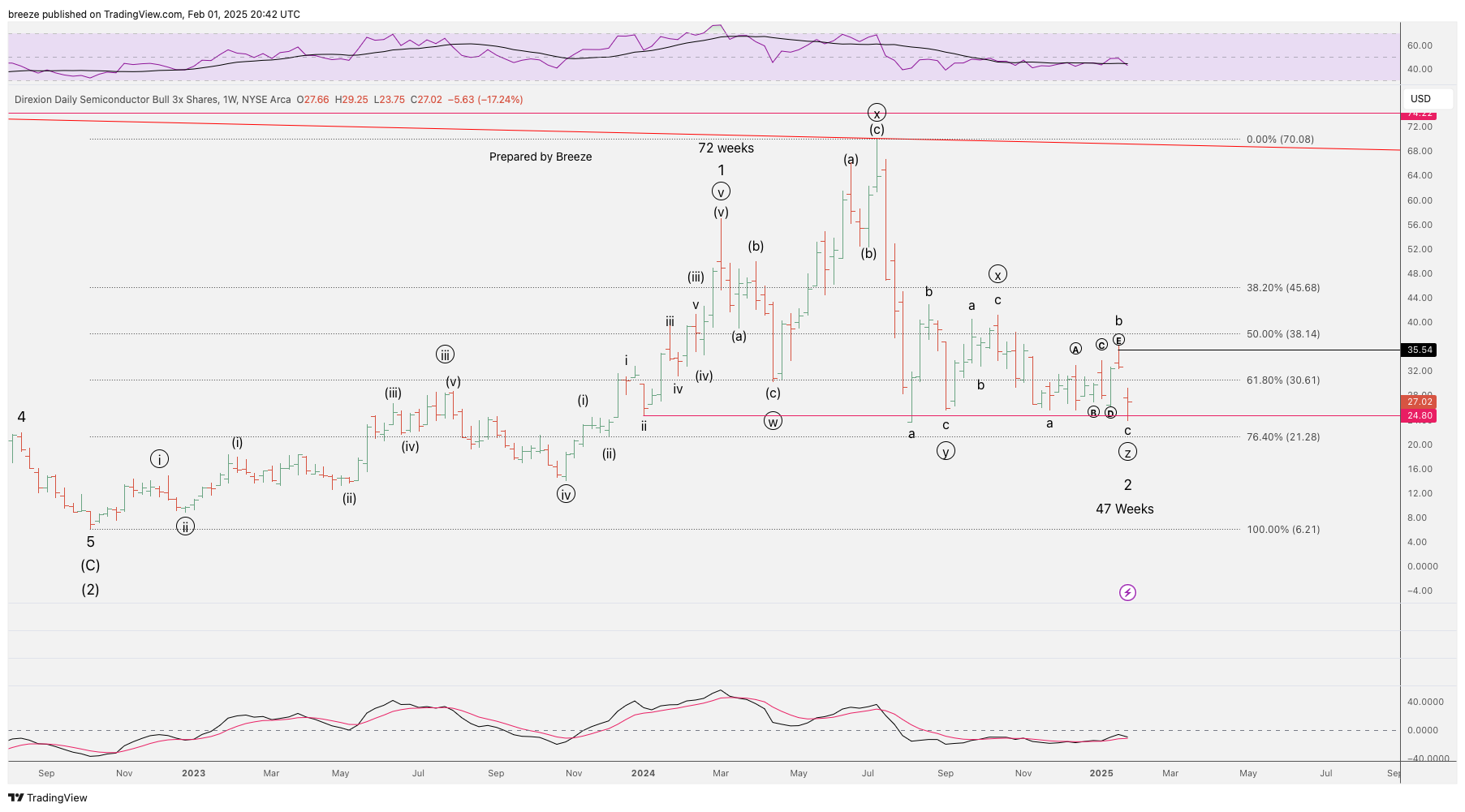 Dave, here's my best fit SOXL Wave Count. Needs a RSI reversal. Breeze