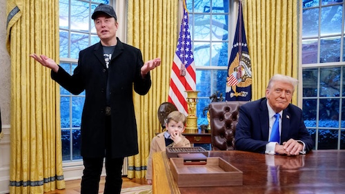 Musk Jr. is standing right there in the Oval Office while picking his nose!