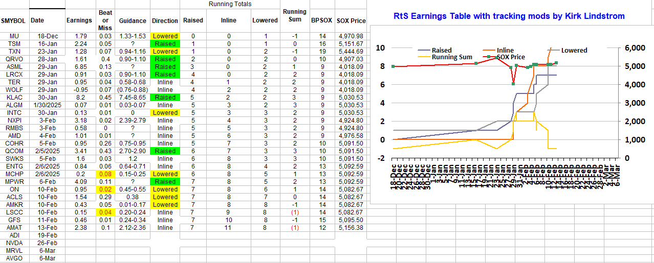 SOX Components Earnings' Table Update - Now Including AMAT's Beat and Inline Guidance. AMAT is falling after hours due to concerns over their revenue forecast.