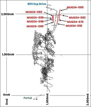 - The intersection in hole MUG24-083 is directly along strike of previously-reported thick high-grade intersections (see ASX announcement dated 10th of December 2024):