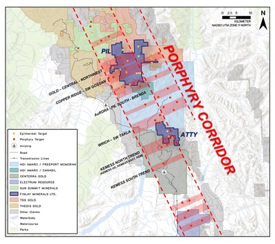 VANCOUVER, BC, Feb. 20, 2025 /CNW/ - Finlay Minerals Ltd. (TSXV: FYL) (OTCQB: FYMNF) ("Finlay" or the "Company") has identified multiple porphyry and porphyry-related epithermal target zones on its 100% owned PIL & ATTY Properties in the heart of the prolific Toodoggone porphyry copper-gold and epithermal precious metals district of northern British Columbia, Canada.