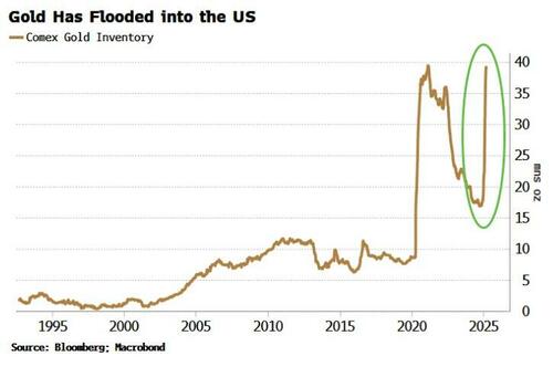 The precious metal has re-established itself as the ultimate geo-political asset in recent years. In recent weeks gold has been traveling from Europe and filling up warehouses for futures delivery in the US, probably due to a squeeze in the physical metal in vaults in London and Switzerland. That gold has not yet left the US.
