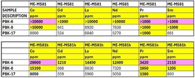 - NdPr ratios are high, averaging 26%; neodymium and praseodymium are economically important critical metals used in electric vehicle motors and turbines.