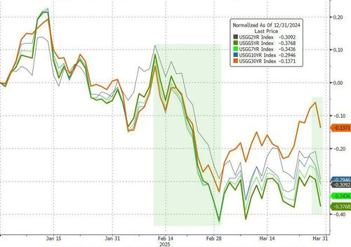 However, Treasury yields tumbled today - growth concerns trumping inflation fears - having dropped significantly in Q1, with the belly outperforming...