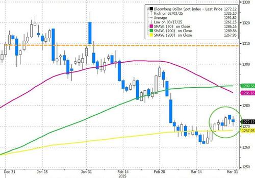 The dollar ended Q1 lower, but found support at its 200DMA...