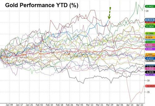 Finally, saving the best for last, Gold surged over 16% in Q1, its best start to a year since 1986...