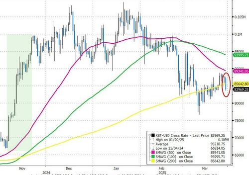 Bitcoin was lower in Q1 but it is still well above the pre-election levels. Today's tumble broke BTC back below its 200DMA...