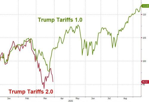 The (stock) markets did not like that double whammy of higher inflation and slower growth (even though we wonder why all those Democrats - who are so terrified of higher prices - are not already spending their money now before Trump's terrible tariffs erase their purchasing power?) plunging today, erasing the week's gains...