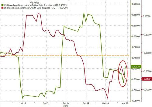 Interestingly both growth and inflation macro measures are lower in Q1 (today's PCE beat is evident at the end) - this is not stagflation (the inflation fears seem more in the soft data than the hard data br0adly speaking... for now)...