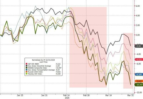 ...and that dragged all the majors into the red for Q1 with Nasdaq the biggest loser...