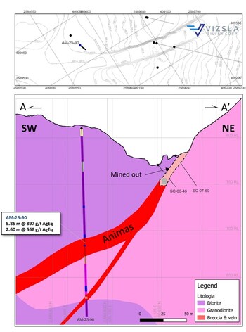 Figure 1: Plan map showing Animas Vein system and the location of hole AM-25-90. (CNW Group/Vizsla Silver Corp.)