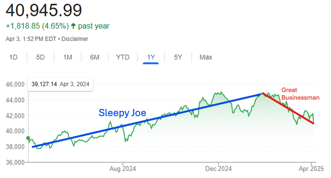 Remember when the Great Businessman said that Sleepy Joe would crash the stock market? Remember?
