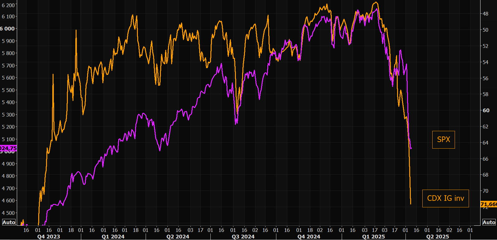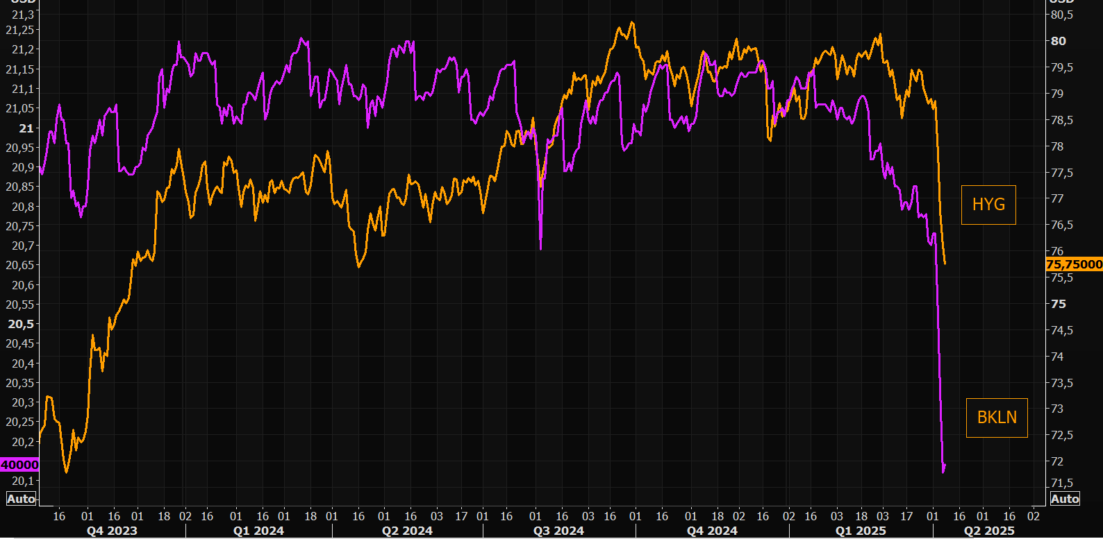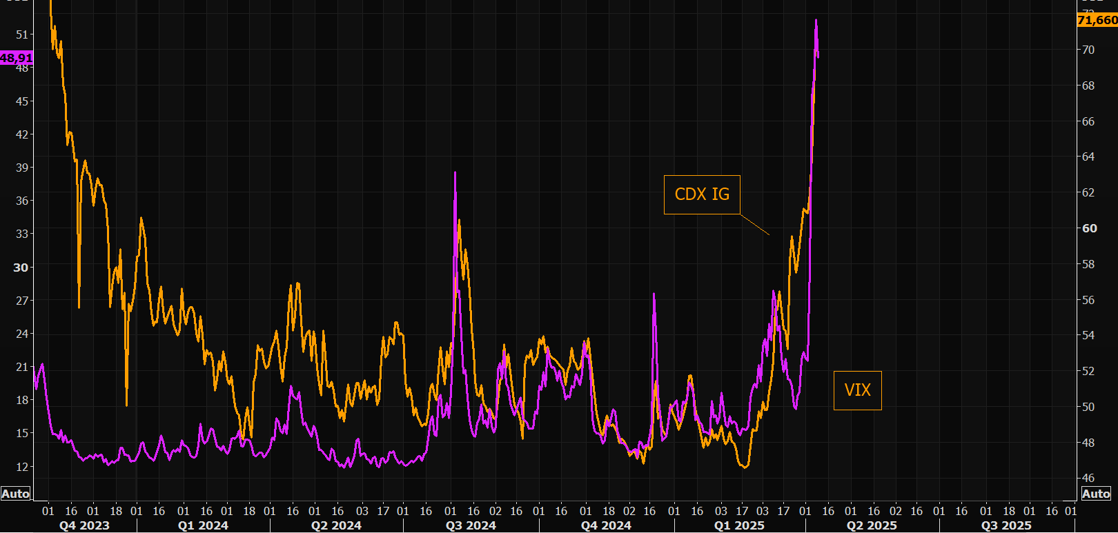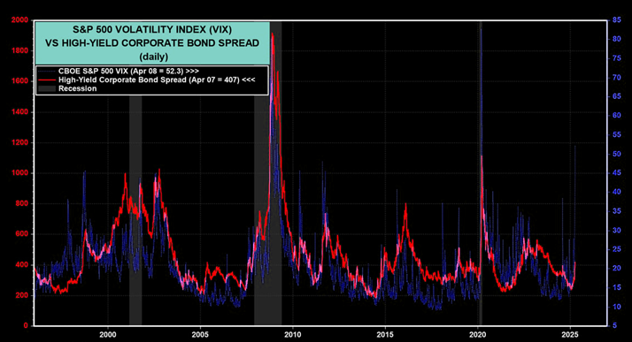 To: Julius Wong who wrote (213079 ) 4/9/2025 6:26:08 AM From: TobagoJack Respond to of 218584 re <<Trump adviser Peter Navarro and 'economics expert Ron Vara' >> ... triggered somethingzerohedge.com "Trump Playing With Liquid Nitro" BY THE MARKET EAR WEDNESDAY, APR 09, 2025 - 17:12Widening rapidly The credit markets are starting to show signs of stress. The yield spread between the high-yield corporate bond composite and the 10-year Treasury bond is widening rapidly at the same time as the VIX is soaring. Source: Yardeni Credit "crunched" CDX IG has exploded to the upside. Chart 2 shows the CDX IG (inv) vs SPX. Source: Refinitiv Source: Refinitiv “The avalanche has really just started” Credit legend and Saba Capital Management founder Boaz Weinstein is warning that the selloff in corporate bonds accelerate by tariffs tensions could spur a wave of bankruptcies that may ramp up faster than in previous market crises... and The Fed is hamstrung from taking action (cutting rates to save the world) because of inflation fears. Three powerful quotes:“The avalanche has really just started,” “The hit could be faster and the bankruptcy rate could spike much faster than other crises.” "Investors shouldn’t rule out the possibility of a severe recession ," Equity vs credit protection Need a bigger chart for both the VIX and the CDX IG. Source: Refinitiv The waterfall formation ETFs that invest in high-yield corporate bonds and in senior bank loans are starting to plunge. Chart shows HYG and BKLN. Source: Refinitiv Playing with liquid nitro "The Stock and Bond Vigilantes are signaling that the Trump administration may be playing with liquid nitro. Something may be about to blow up in the capital markets as a result of the stress created by the administration's trade war. If so, then the S&P 500 will fall into a bear market for sure. That's the bad news. The good news is that the Fed Put will probably make a quick comeback if this happens. However, the financial markets might not recover unless the Trump administration moves quickly to negotiate trade deals. It might have to postpone the tariffs for 90 days while it is doing so." (Yardeni) VIX playbook: Now it is a crisis The VIX closed turnaround Tuesday at 52.3, a statistically significant new high for the current tariff-driven selloff and in territory we have only seen during past periods of crisis. The 4-standard deviation level for the VIX is 50.7, and we are now above that. The only times the VIX has closed over 50 since its introduction in 1990 were in 2008 – 2009 (the depths of the Financial Crisis and Great Recession) and 2020 (Pandemic Crisis). Source: Refinitiv VIX levels that demand a policy response We are now in the realm of VIX levels that demand a policy response if stocks are to stabilize. 1. In 2008 – 2009, Congress and the White House were indecisive and slow with respect to addressing the Global Financial Crisis and coincident Great Recession. The TARP bill, meant to bail out the US banking system, failed on its first vote, signaling that lawmakers did not grasp the extent of the problem. 2. Policy action was much swifter in early 2020, since the nature of the crisis was clear to all. Congress passed multiple bills providing fiscal stimulus, ultimately totaling $5 trillion. The Fed took the unusual step of backstopping the US corporate bond market on top of its usual playbook of cutting rates to zero and buying long-dated Treasuries to reduce interest rates across the curve. The (sort of) good news is that, in a crisis, markets are ultimately bigger than any individual or even government. They will ultimately force a change in policy, either by the current administration or a future one. Put another way, the VIX is both a symptom of the problem and, eventually, the cure. (Data Trek)