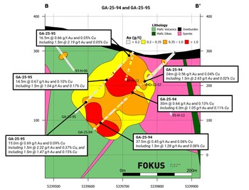 Philippe MacKay, President and CEO of Fokus Mining commented: " Results from Phase 1 of our exploration program consistently demonstrate robust geological continuity and mineralization, reinforcing the Galloway Project's potential. Recent results from the Hurd target, located 300 meters northeast of RB, highlight the presence of multiple broad mineralized zones that continue to expand across the property. The data suggest a significant gold system with meaningful copper intersections, indicating potential for an open-pit bulk-tonnage operation. Drilling completed earlier in Phase 1 confirmed the presence of a higher-grade core at depth within the Hendrick zone, supporting the potential for a bulk-tonnage underground operation. At GP and RB, drilling extended the near-surface mineralized footprint along strike, further reinforcing the potential for a larger-scale open-pit configuration. With the TITAN survey now finalized, the Company is preparing to initiate Phase II of drilling, which will focus on refining known zones and testing new targets across the Galloway property."