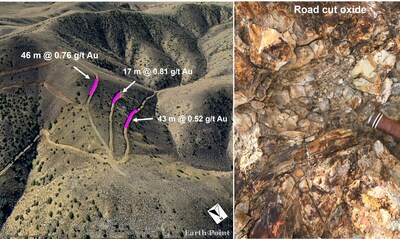 - Road cut sampling up to: 46m @ 0.76 g/t Au (oxide). (see Figure 2)