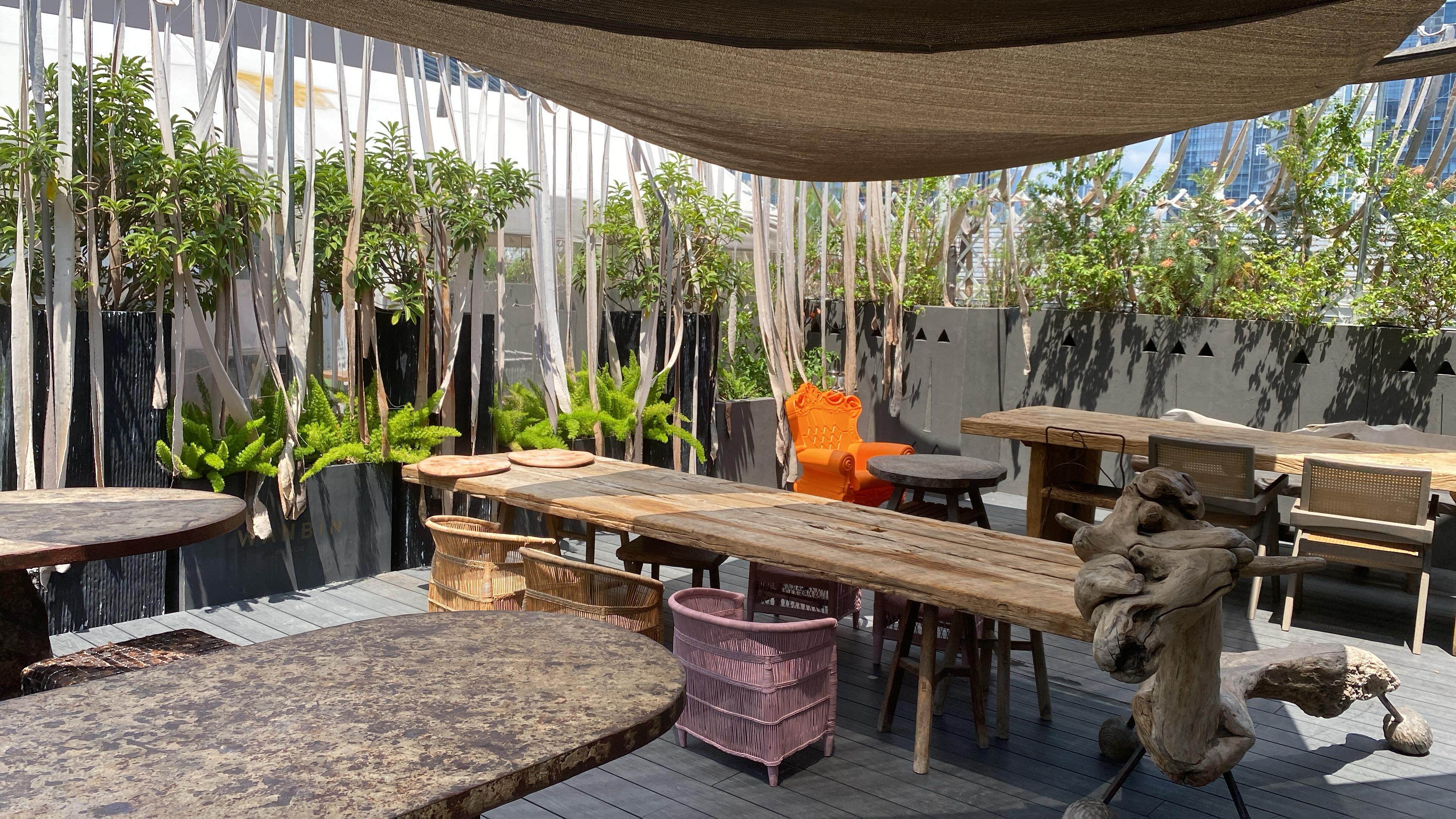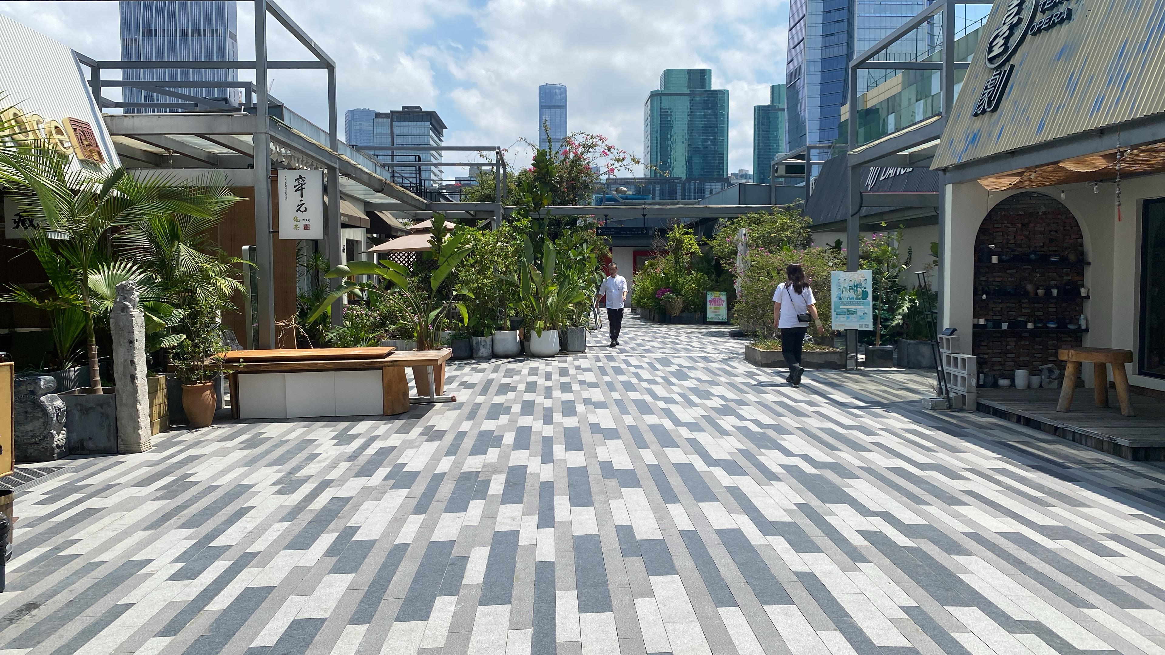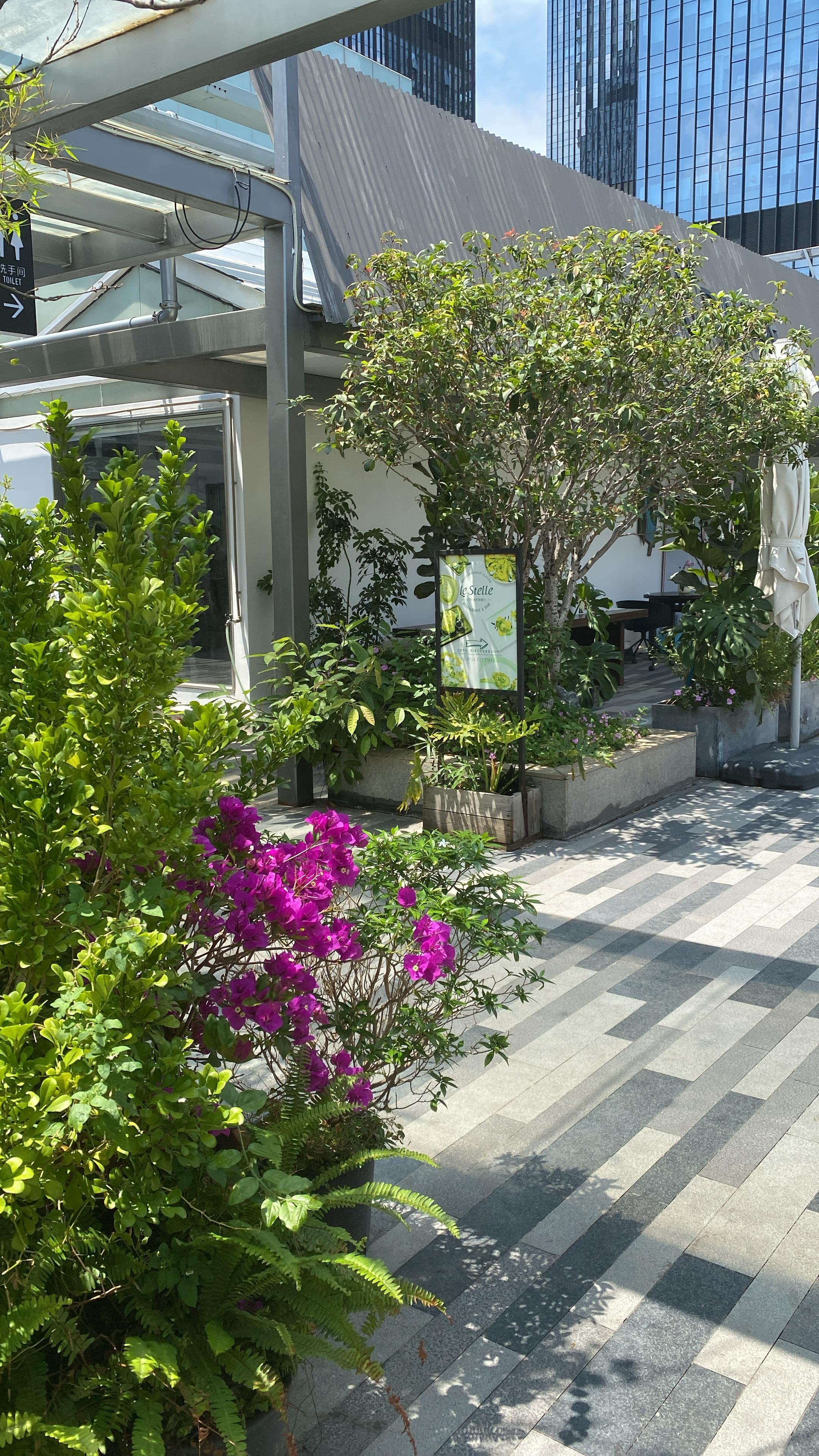 The rooftop has different types of restaurants, a dance studio, a coffee making school, etc.