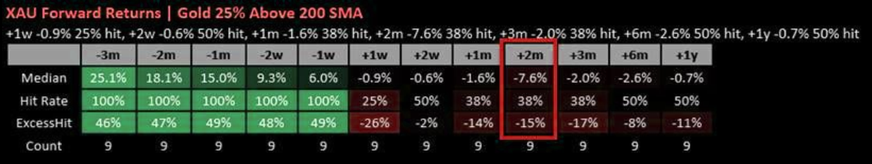 Gold overshooting the 200 day moving average in an extreme fashion has led to rather aggressive "local pullbacks", according to Nomura's McElligott.