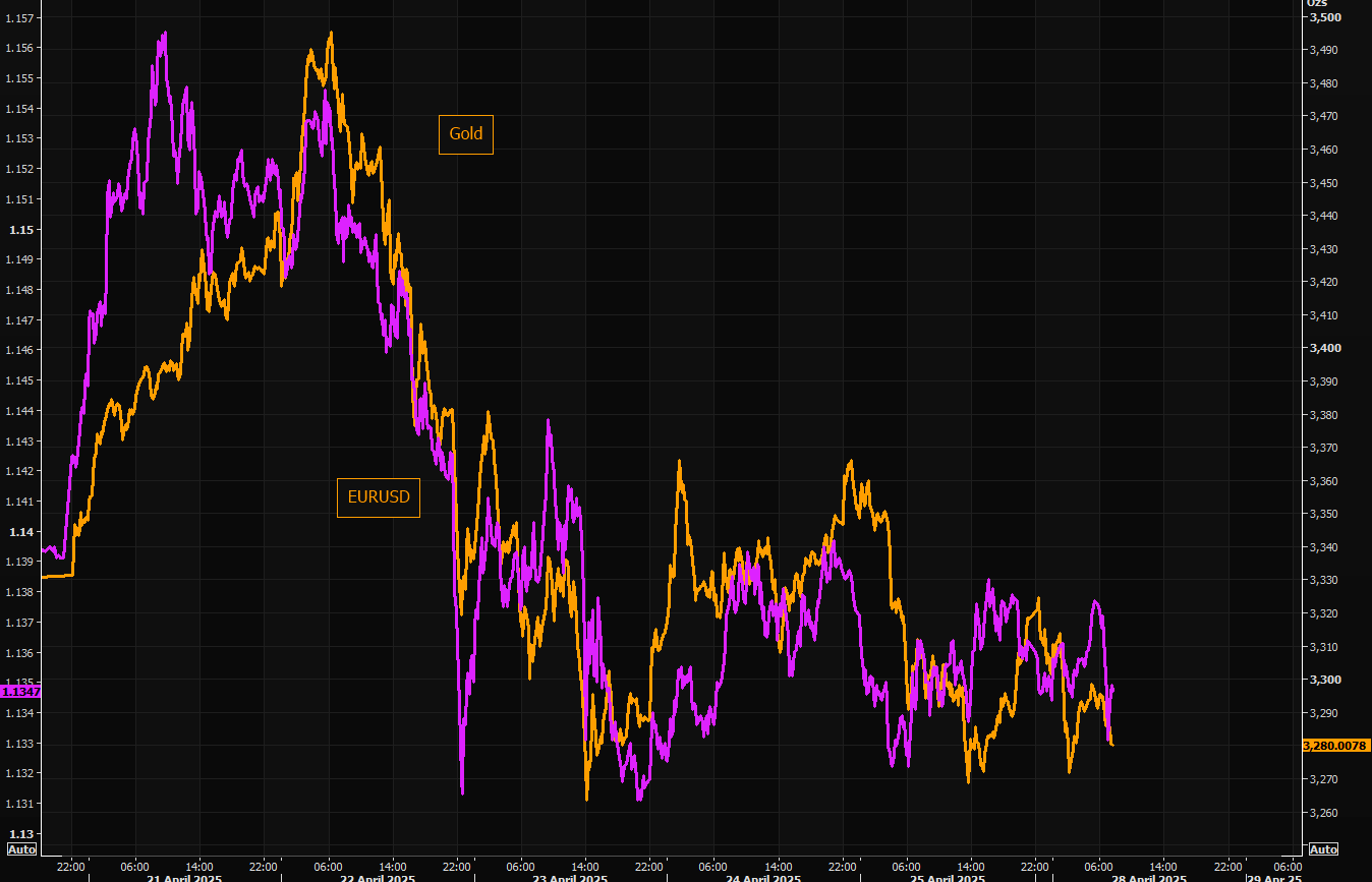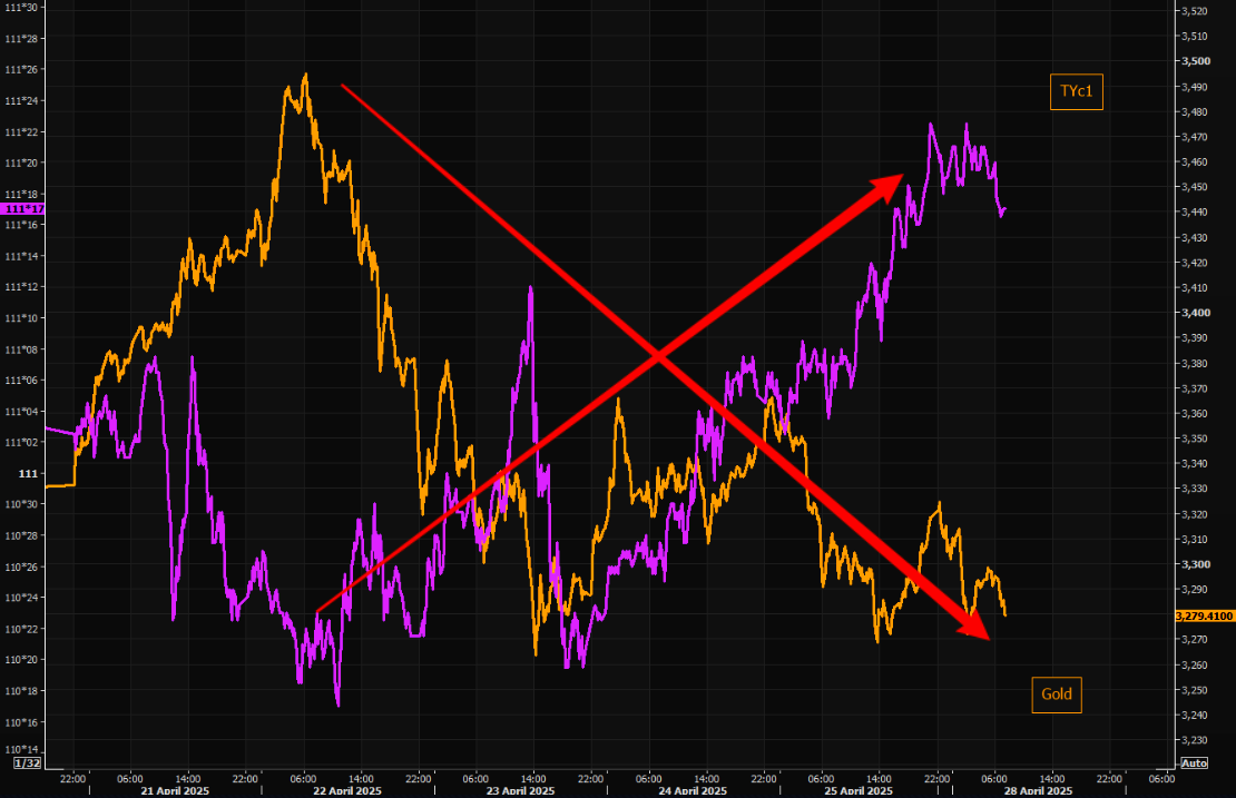 Somebody stopped selling Treasuries and loading up on gold, at least briefly.