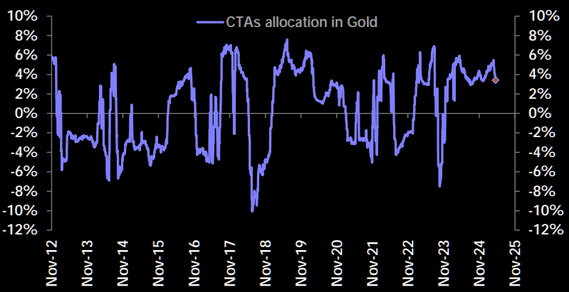 CTA projections has momentum chasers as potentially aggressive sellers of gold.