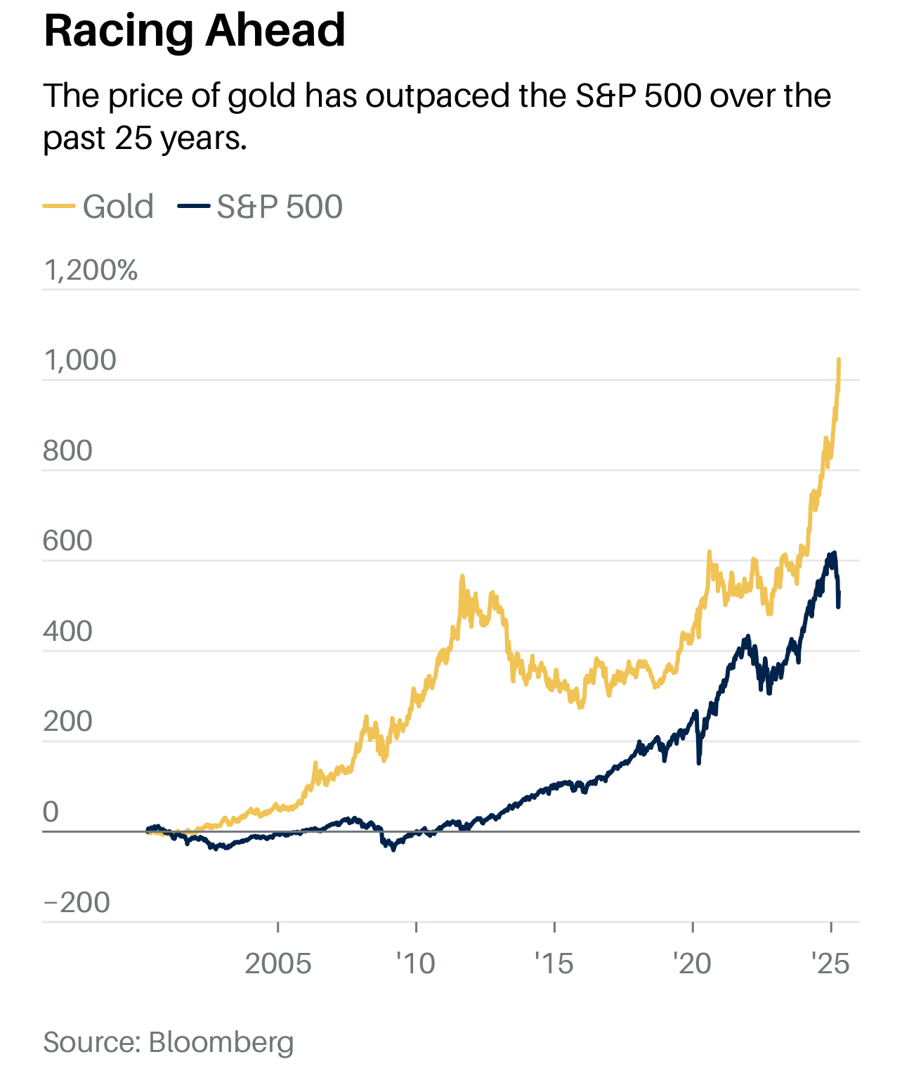 Give gold bugs their due. The yellow metal has been a light in the investing darkness. At a recent $3,406 per troy ounce, it’s up 30% this year, to the envy of stock, bond, and Bitcoin holders. Cash-flow purists will call this a flash in the pan, but they should look again. Over the past 20 years, SPDR Gold Shares, an exchange-traded fund, has surged 630%—85 points more than SPDR S&P 500, which tracks shares of the biggest U.S. companies.