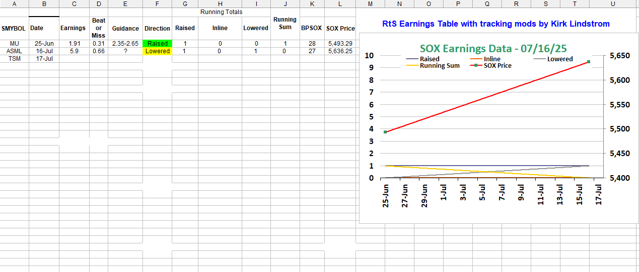 SOX Components Earnings' Table Update - Now Including ASML's Nice Beat BUT Lowered Guidance Resulting in a currently 10% Loss for the stock. ASML is pointing out that there is a lot of uncertainty going forward. Last Quarter ASML gave Inline Guidance. TSM is up next for earnings. TSM is a stock that has been raising guidance regularly on AI strength: