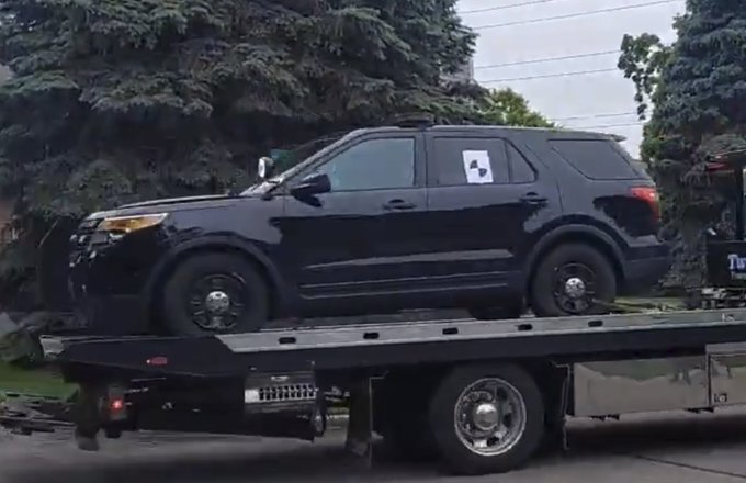 TOWED AWAY: Faux police squad believed to be part of overnight political assassination at home of Speaker Hortman has been processed at scene & now removed. Massive manhunt continues for suspected gunman. @FOX9
