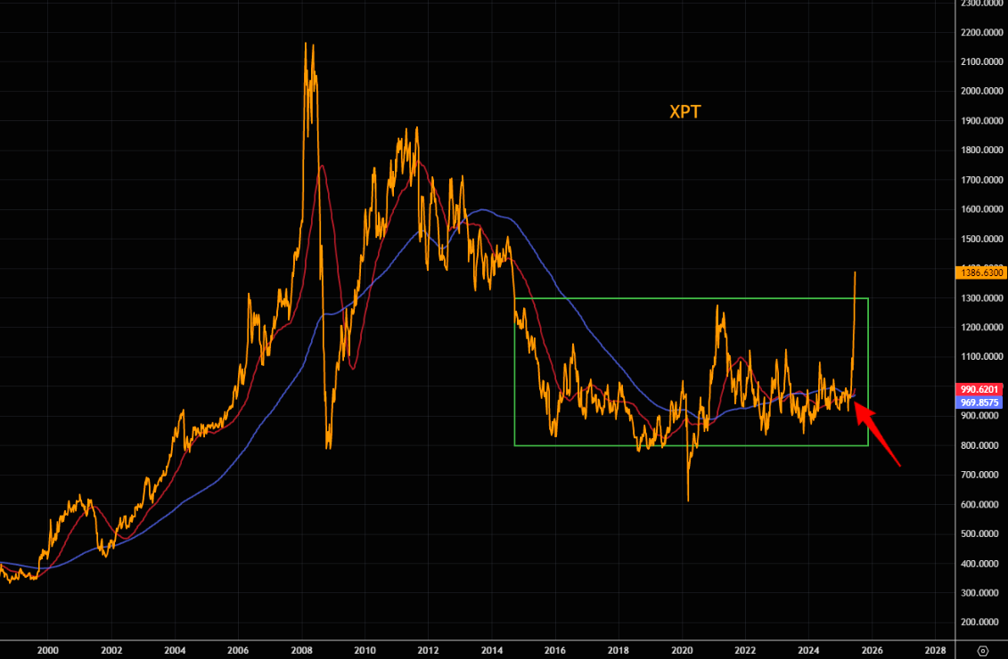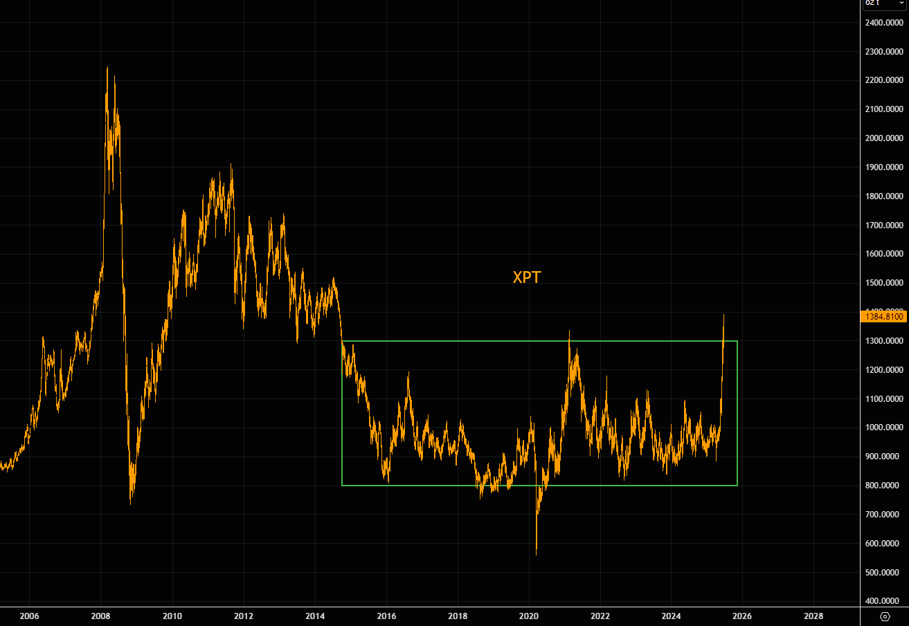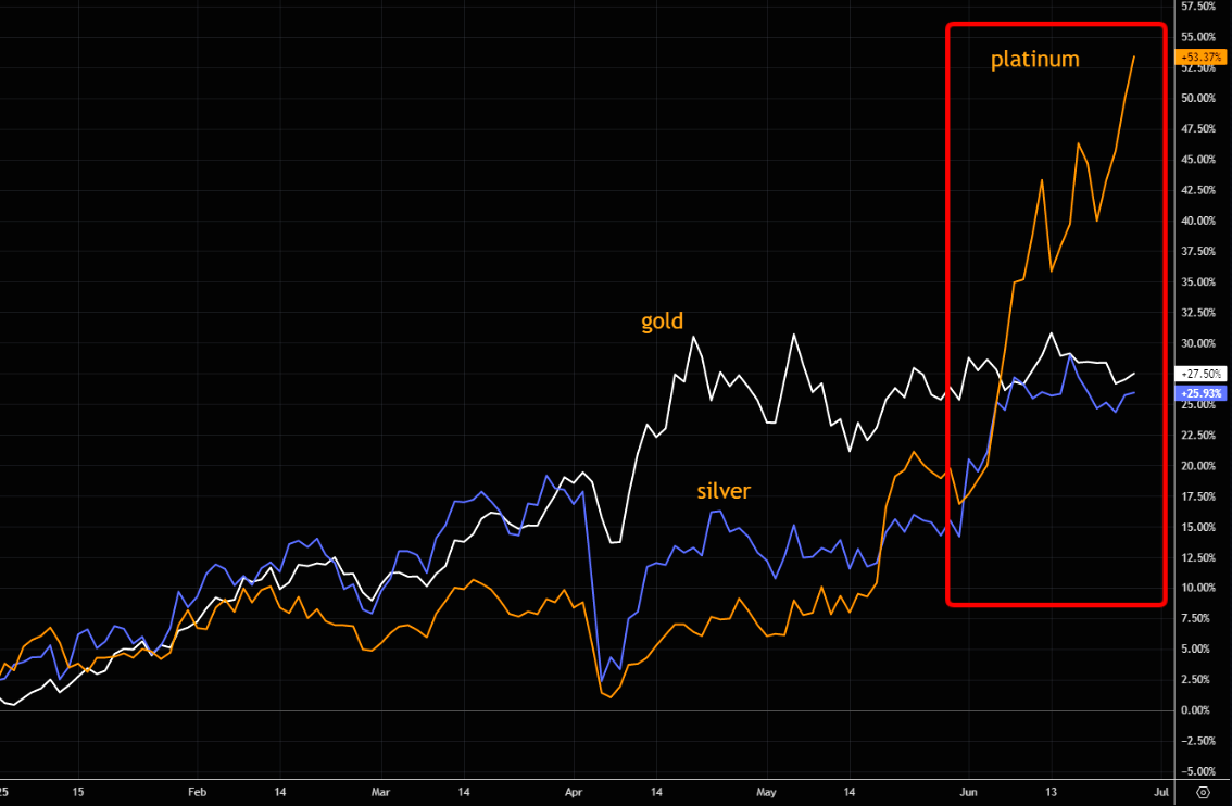 Platinum leaving silver and gold way behind. Silver tried keeping up for a while, while gold has been stuck for months.